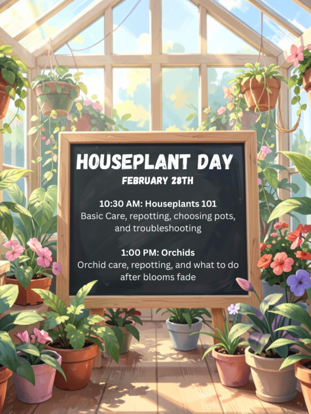 🌿 Upcoming Classes & Events Join us in the greenhouse for a great lineup of hands-on classes and special events. Here’s what’s coming up, in order: Houseplant Day Sat. Feb. 28th We will be hosting Sarah Connor, the founder and owner of Maison Green of Boston. Maison Green was born out of a desire to...